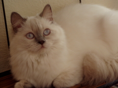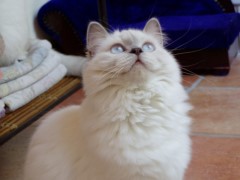 Bluna ist ausgezogen und hat einen schönen Platz in einer ganz netten Familie gefunden. Nicht nur ihr Geburtsdatum ist etwas Besonderes! Bluna ist eine wunderschöne Seltenheit. Nach ihr hatte ich lange gesucht. Sie hat nicht nur besonders ausdrucksstarke Gesichtszüge, sondern alles an ihr ist einfach schön, vor allem das helle seidenweiche Halblanghaar-Fell. Bluna ist eine treue Seele. Fremden gegenüber verhält sie sich eher schüchtern. Wenn sie aber jemanden in ihr Herz geschlossen hat, liebt sie diese Person abgöttisch. Außerdem ist Bluna unsere absolute Federwedel-Chefin. Keine sonst ist so flink und munter bei diesem Spiel. |