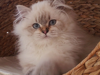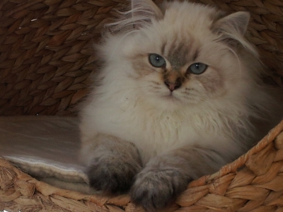 Sie plappert in einer Tour, sorgt immer lautstark für Nassfutter-Nachschub (denn was anderes ißt sie ja nicht) und ist eine ganz liebe Schoßkatze. Denn dort lässt sie sich gerne nieder, selbstbewusst und verschmust.