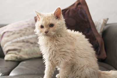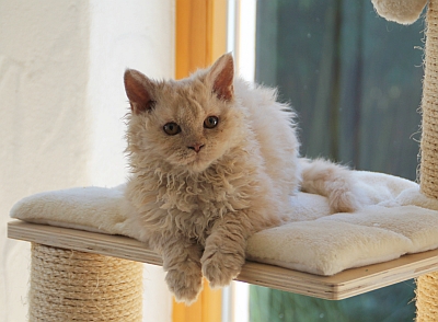 Nach ihrem 2. Wurf gehe ich davon aus, dass sie homozygot, also reinerbig für Locken, ist. Denn alle ihre Kitten waren bisher curly.