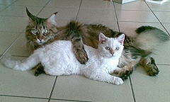 Hummelchen, unser schönes Selkirk Rex Mädchen, hat in Rocky einen großen Freund gefunden. |