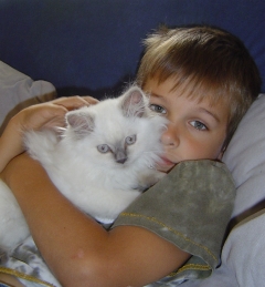 | Dieser Prachtkater ist "Cooper". Er lebt in Berlin bei Christine und Robert in der Zucht "von der Gnieseburg". | Donut (Selkirk Rex) heißt nun Kimba. | Kimba klein: Angelika und Munir haben sich zur Hochzeit diesen Traum erfüllt. | ||||