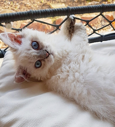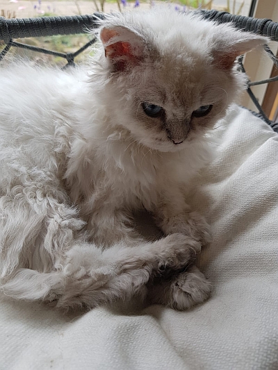 Das ist der erste Wurf von unserer wundervollen Flocke. Papa Dante ist homozygot, d.h. reinerbig für Locken. Gerne beantworten wir alle Ihre Fragen. Melden Sie sich einfach bei uns.